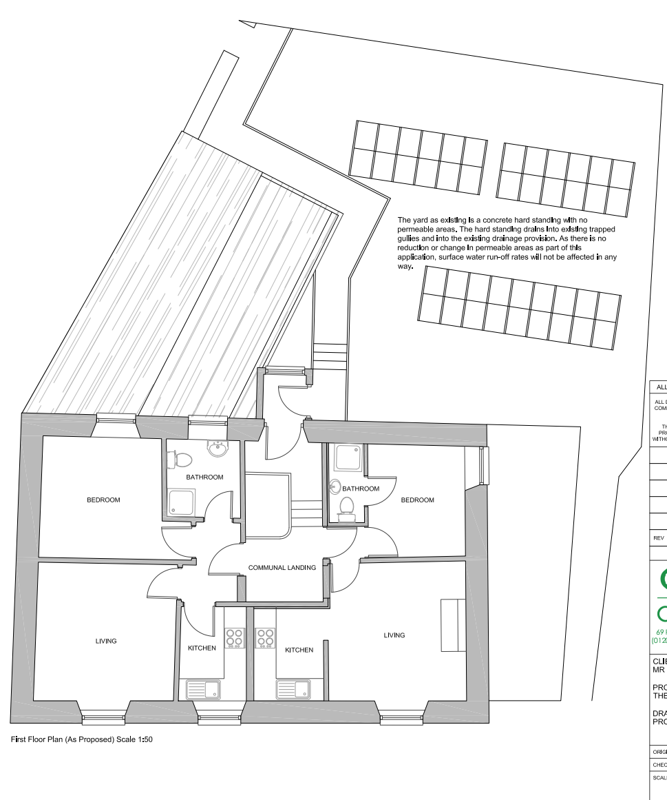 - Formation of safe means of escape for existing first floor residential accommodation including construction of external staircase. Conversion of first floor apartment to form two apartments