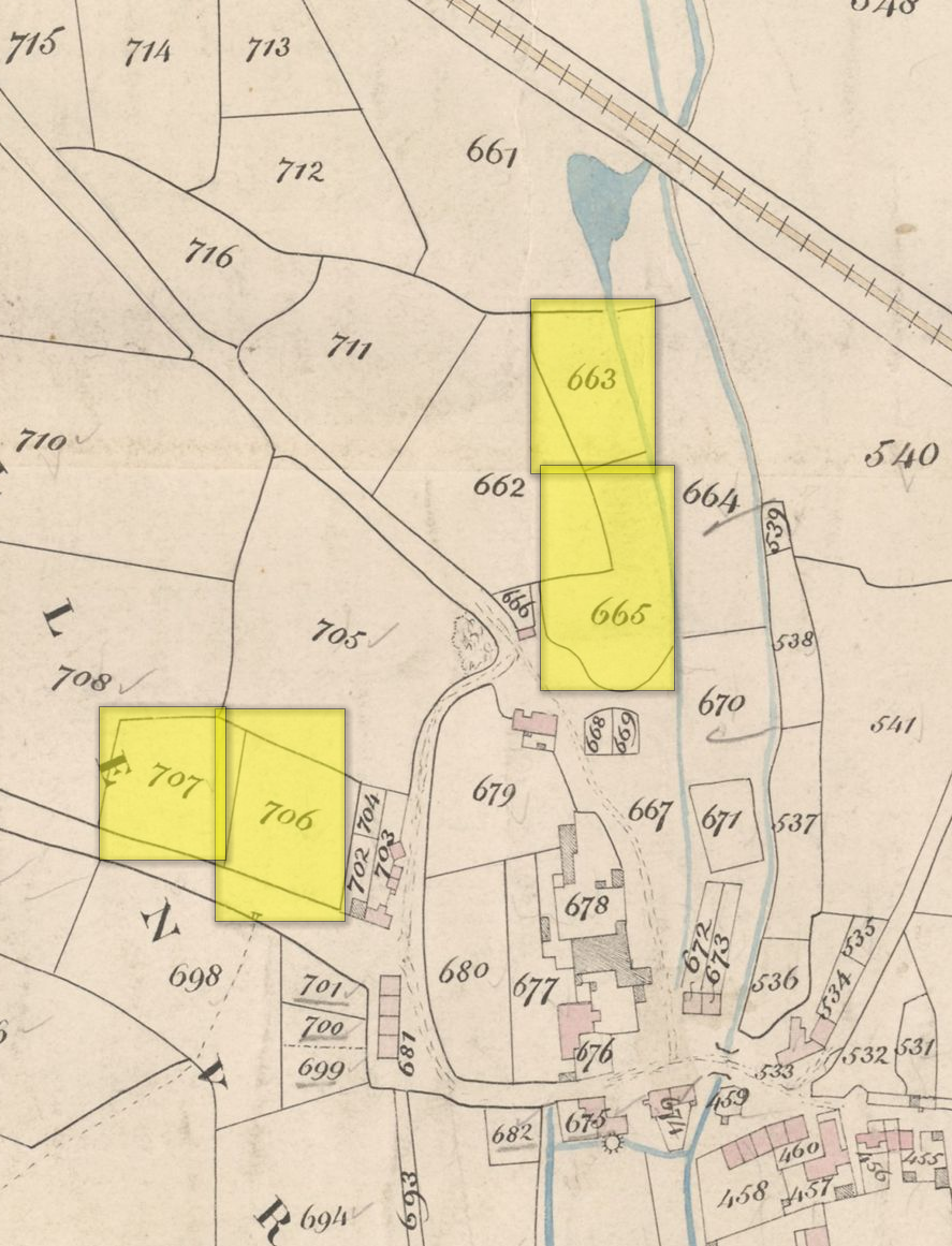 1842 Tithe | Executors of Will. Gilbart 706,707,663,665 | Meadows x 3, Orchard