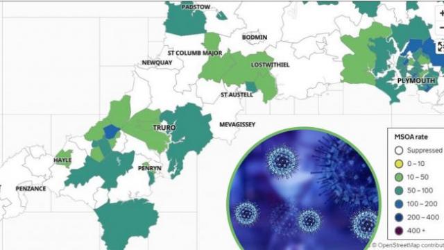 Penryn has a further four, while 'The Lizard' - which actually includes the wider Lizard Peninsula of Mullion, The Lizard, St Keverne and the Meneage villages - still shows nine cases.